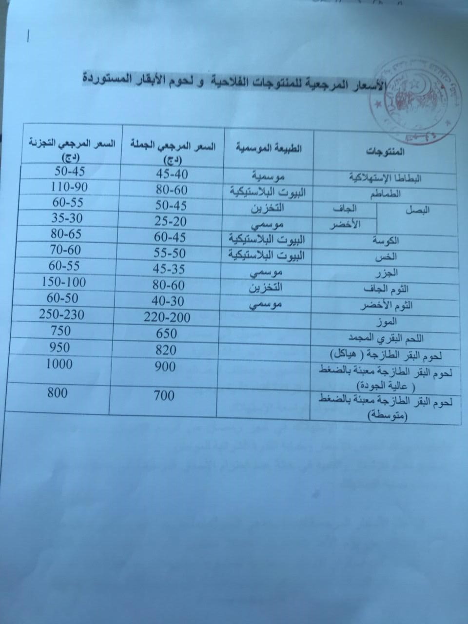 هذه الاساعار التي خصت بها عدد من الخضر و الفواكه الواسعة الاستهلاك الى جانب اللحوم المستوردة، وذلك للحد من ظاهرة المضاربة خلال الشهر الفضيل.