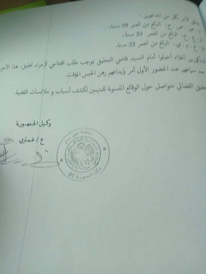 ووفق بيان للنيابة العامة بمحكمة عين بسام فإنه يتعلق الامر بكل من” ع.ع “والبالغ من العمر 32 سنة وكذا “ص .ص” 29 سنة بالإضافة إلى “ع.م.ي” 23 سنة.