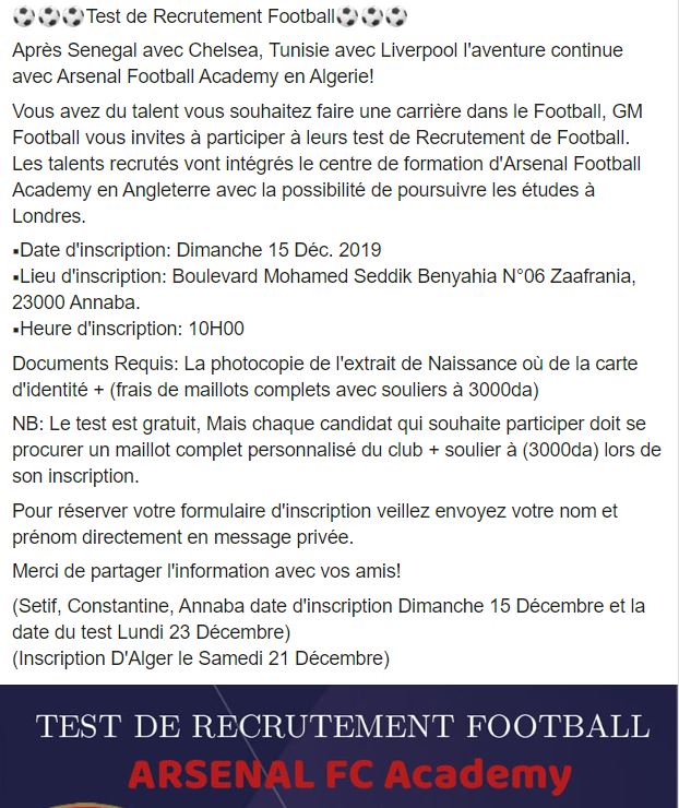 الشبكة التي توهم المواهب الكروية الشابة في الجزائر، وفي بعض البلدان العربية، بإدماجهم في أكاديميات الفرق الدولية والعالمية بأوروبا مقابل تسديد مبالغ مالية.