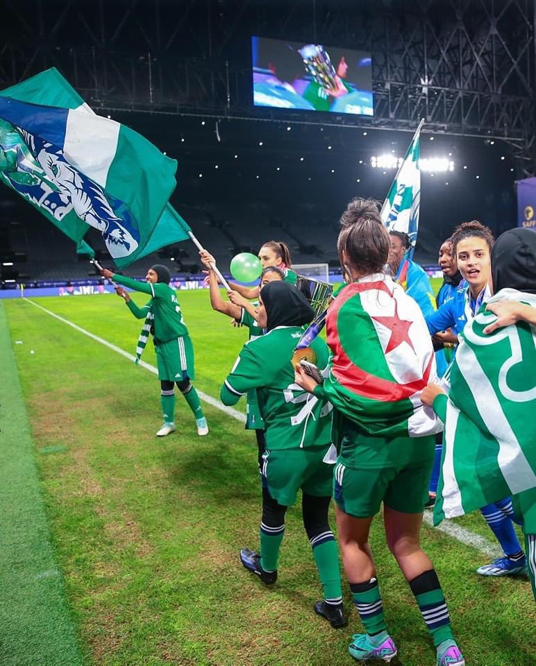 وحملت عبلة بن سنوني، العلم الجزائري، خلال احتفالها مع زميلاتها بهذا اللقب الأول لها مع ناديه الأهلي السعودي.