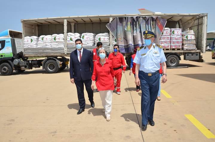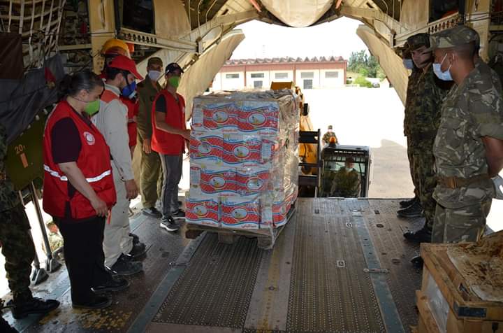 المساعدات قدمت من طرف الهلال الأحمر الجزائري وتم شحنها على متن طائرتي نقل عسكريتين انطلاق من القاعدة الجوية بوفاريك.