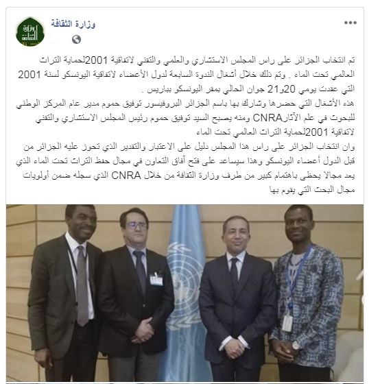 تم انتخاب الجزائر على رأس المجلس الاستشاري والعلمي والتقني لاتفاقية 2001لحماية التراث العالمي تحت الماء .