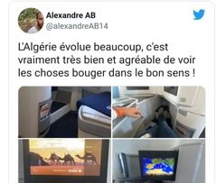 ونشر “ألكسندر” صور له خلال رحلة عبر درجة رجال الأعمال على متن طائرة إيرباص “A330-200” التابعة للخطوط الجوية الجزائرية. مشيدا بالمستوى العالي للخدمات التي تقدمها الشركة.