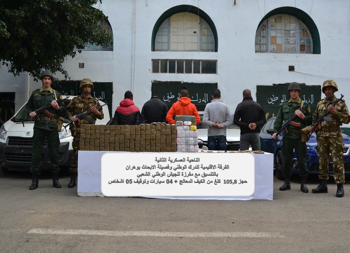 وحجزوا خلال العملية، 105,8 كيلوغرام من الكيف المعالج، و 4مركبات سياحية.