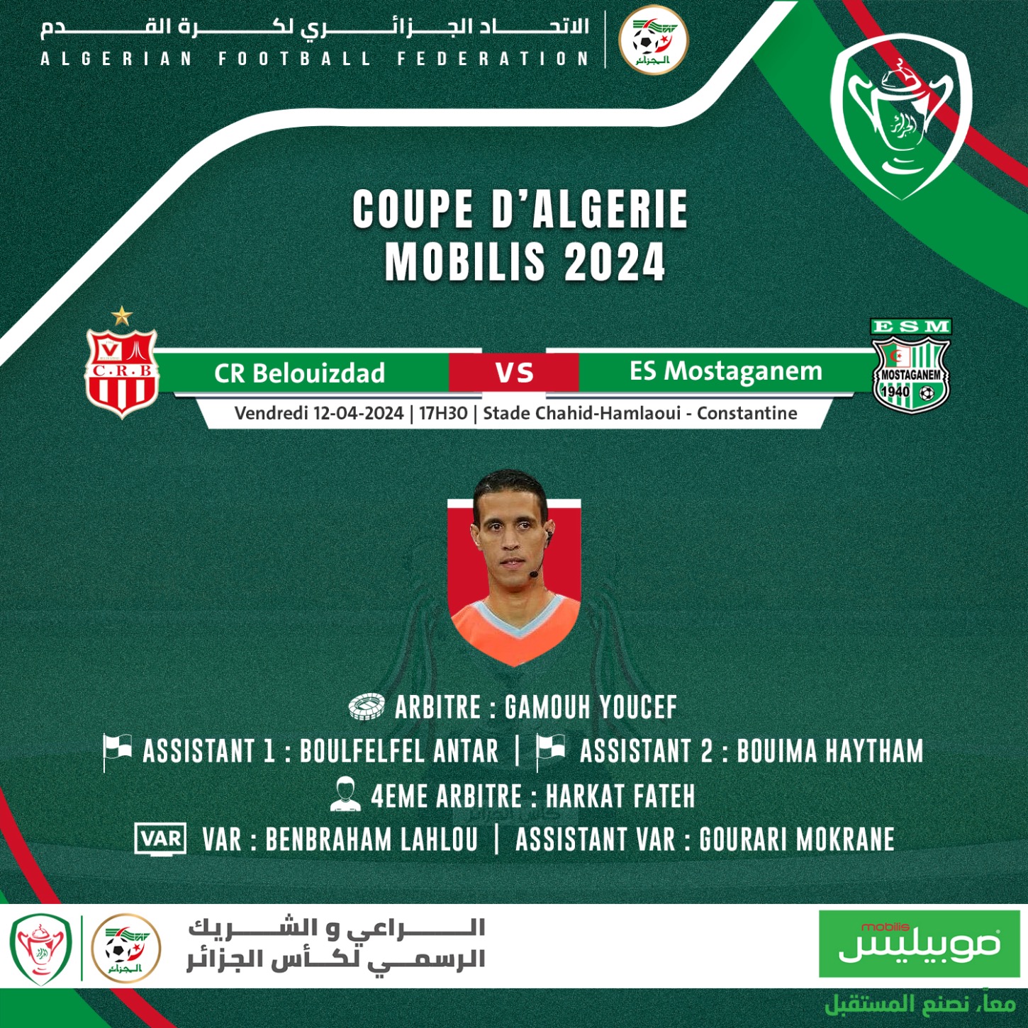 وقالت إنّ المباراة التي ستُجري يوم الجمعة 12 أفريل بملعب الشهيد حملاوي بقسنطينة، والتي ستجمع بين شباب بلوزداد و ترجي مستغانم سيديرها الحكم قاموح يوسف.