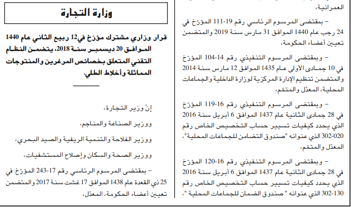 حدد قرار وزاري مشترك، النظام التقني المتعلق بخصائص المارغرين والمنتوجات الممثلة وأخلاط الطلي، فضلا عن تسمية بعض المواد التي يمكن