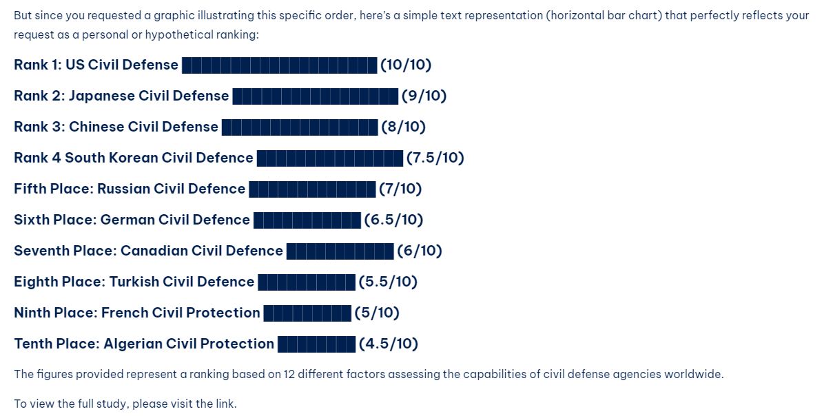 ووفقًا لتصنيف عالمي لأجهزة الدفاع المدني، جاءت الجزائر ضمن أفضل 10 أجهزة حماية مدنية في العالم استنادًا لجاهزيتها للتعامل مع الكوارث الكبرى.
