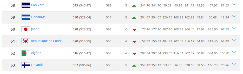 كما احتل المنتخب الوطني المركز الـ11 على المستوى الإفريقي وراء منتخب “الرأس الأخضر” صاحب المركز العاشر.