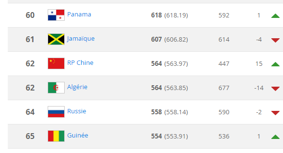 الخسارة ضد المنتخب الزامبي ذهابا و إيابا في تصفيات المونديال، جعلت الخضر يتراجعون بـ14 مركزا عن التصنيف السابق.