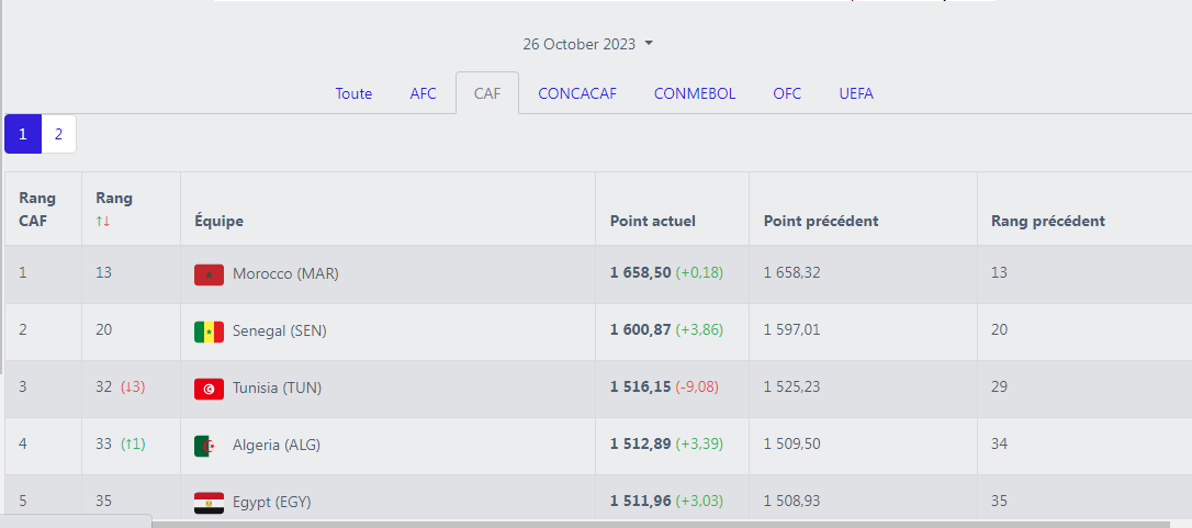 وفي المقابل، حافظ المنتخب الوطني، على مركزه الرابع إفريقيا، حسب ذات المصدر. خلف المتصدر المغرب والوصيف السنغال وتونس صاحبة المركز الـ 4.