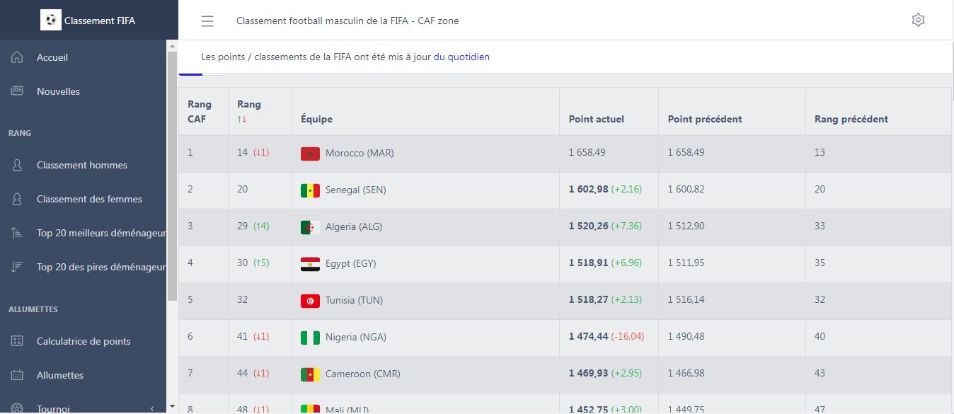 وسمح هذا التقدم الكبير للمنتخب الوطني في تصنيف “الفيفا” بالصعود إلى المركز الثالث إفريقيا. متقدما على المنتخب التونسي، الذي تراجع إلى المركز الخامس. فيما تواجدت مصر رابعة والسنغال في الوصافة والمغرب في الصدارة.