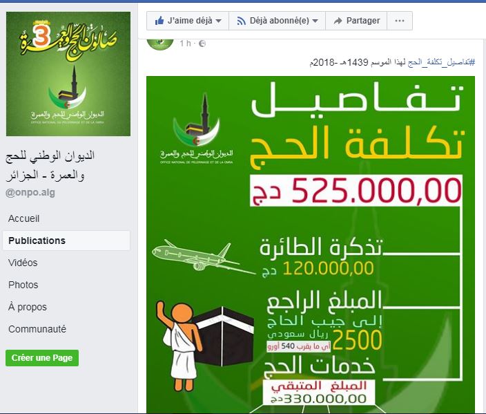 وحسب مانشره الديوان، صباح اليوم الإثنين، على حسابه الرسمي في “الفايسبوك”، فإن القيمة الإجمالية لحج هذه السنة تبلغ الـ 525 ألف دينار.