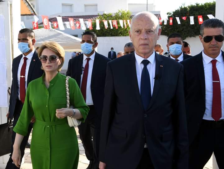 أدلى الرئيس التونسي قيس سعيّد وحرمه، اليوم الإثنين، بصوتيهما في الاستفتاء على الدستور الجديد في مركز اقتراع المدرسة الابتدائية النصر 1 بحي النصر.