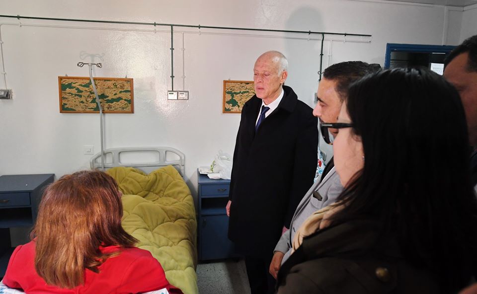 زار الرئيس التونسي قيس سعيّد مستشفى قوات الأمن الداخلي للاطمئنان على الحالة الصحية للجرحى الذين أصيبوا جراء التفجير الإرهابي بالعاصمة تونس.