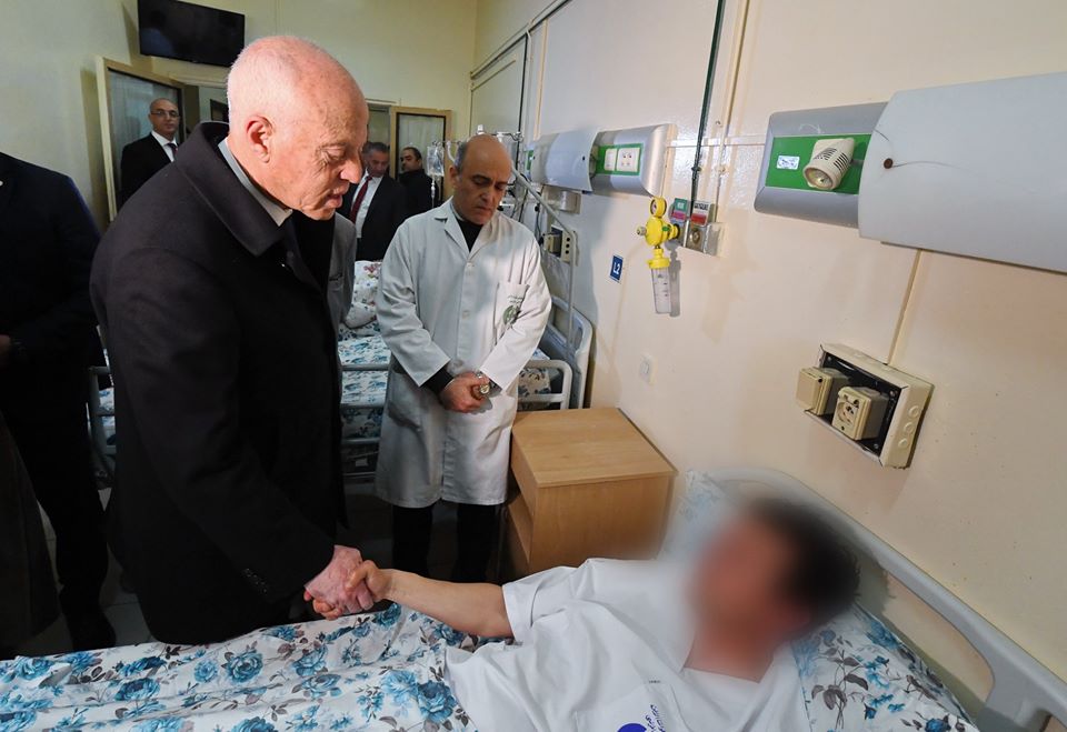 الرئيس التونسي يزور جرحى العملية الإرهابية من قوات الأمن