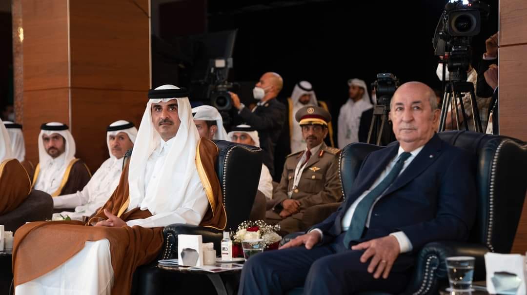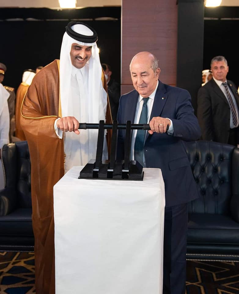 أشرف اليوم رئيس الجمهورية عبد المجيد تبون رفقة امير دولة قطر سمو الشيخ تميم بن حمد آل ثاني، أمير دولة قطر على وضع حجر الأساس للمستشفى الجزائري القطري الألماني.
