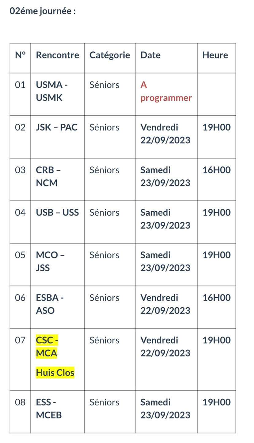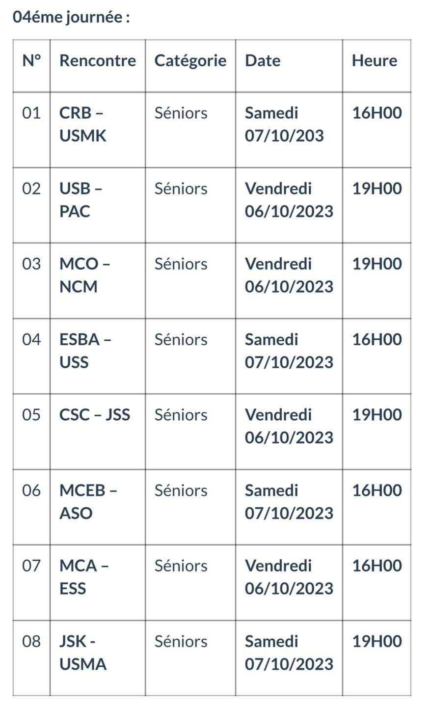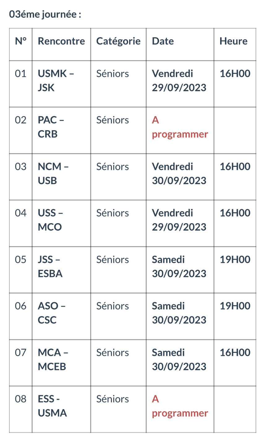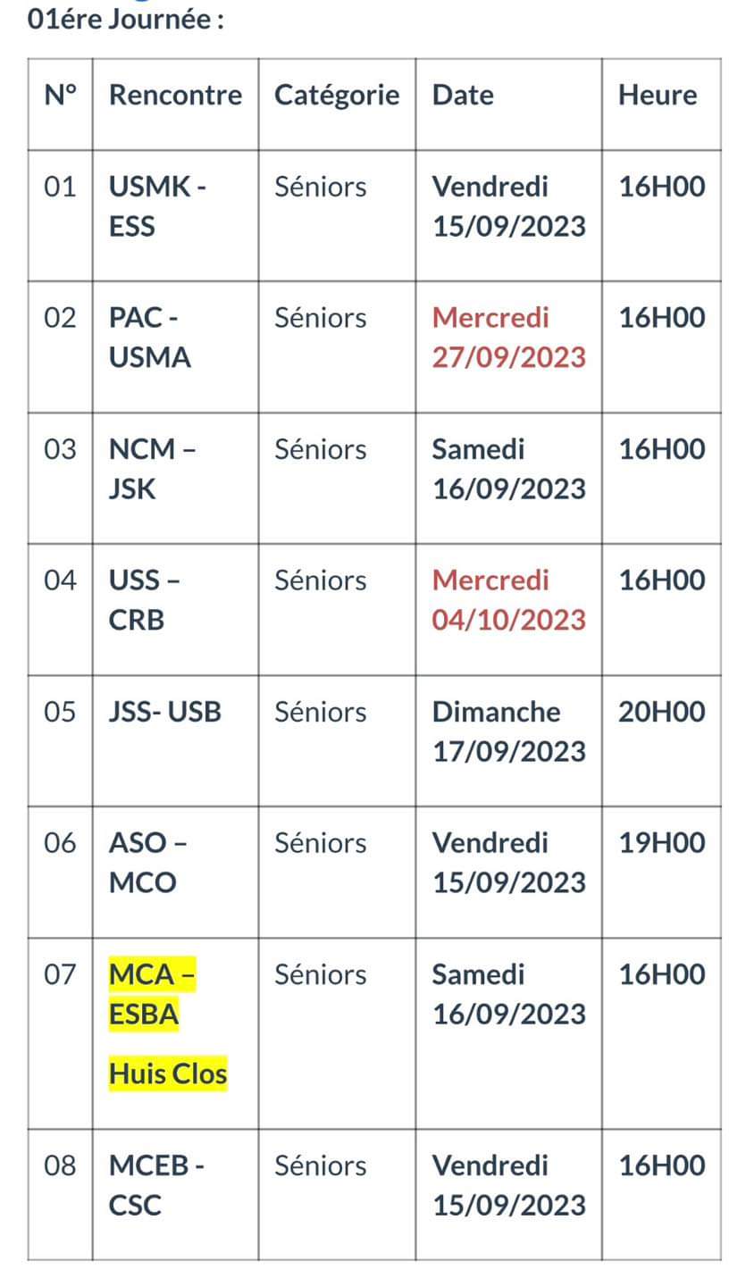 ويتعلق الأمر بمواجهتي نادي بارادو، ضد اتحاد العاصمة، التي تأجلت إلى تاريخ 27 سبتمبر، ومباراة الاتحاد السوفي أمام شباب بلوزداد، التي تأجلت إلى تاريخ 4 أكتوبر، بسبب مشاركة الاتحاد، والشباب، في المنافسة الإفريقية.