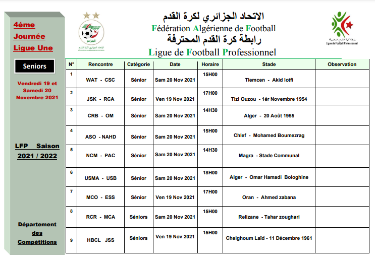 وحددت الرابطة المحترفة، عبر موقعها الرسمي، تاريخ 19 و20 نوفمبر الجاري لخوض مباريات هذه الجولة.