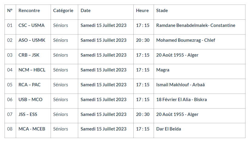 كما قررت الرابطة خوض مبارتي أولمبي الشلف، واتحاد خنسلة، بالإضافة لمباراة شبيبة الساورة ووفاق سطيف، في توقيت مغاير، لباقي مباريات هذه الجولة.