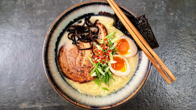 أما المرتبة الثانية فعادت  لطبق Tonkotsu Ramen التقليدي. هو طبق من المعكرونة اليابانية يقدم في مرق أبيض للغاية باللحم والبيض أجيتاما. بصل مفروم جديد وأعشاب نوري البحرية. على النقيض من لونه الأبيض ، غالبًا ما يتم إضافة عدد قليل من شرائح الفطر الأسود.