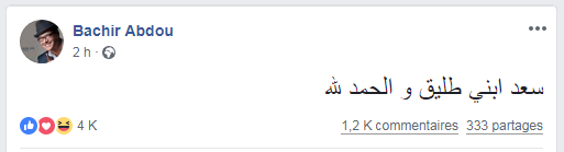 كما نشر والد سعد لمجرد، المغني المعروف البشير عبده على صفحته في “فيسبوك”: “سعد ابني طليق و الحمد لله”.