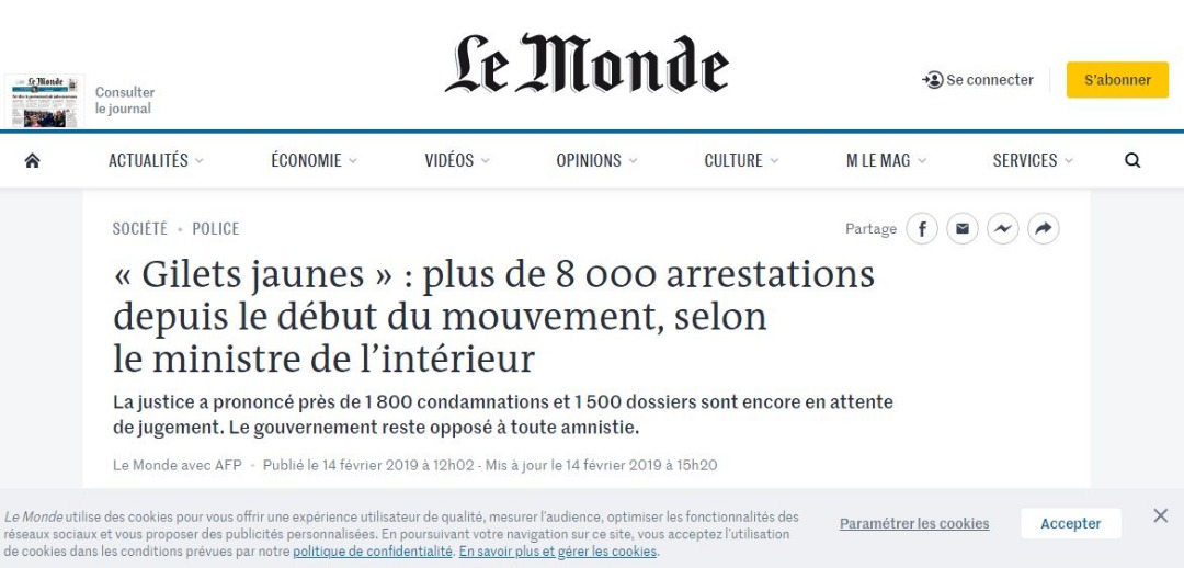بتاريخ 14 فيفري الماضي، كان قد مضى على بداية الاحتجاجات التي شهدتها فرنسا، من خلال مظاهرات السترات الصفراء، ثلاثة أشهر.