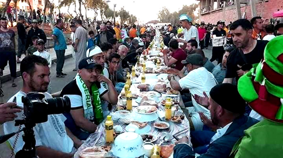 فمن حين لآخر، كانت تنتشر صور ومشاهد لعمليات إفطار جماعي خلال جمعات شهر رمضان، وسط المسيرات.