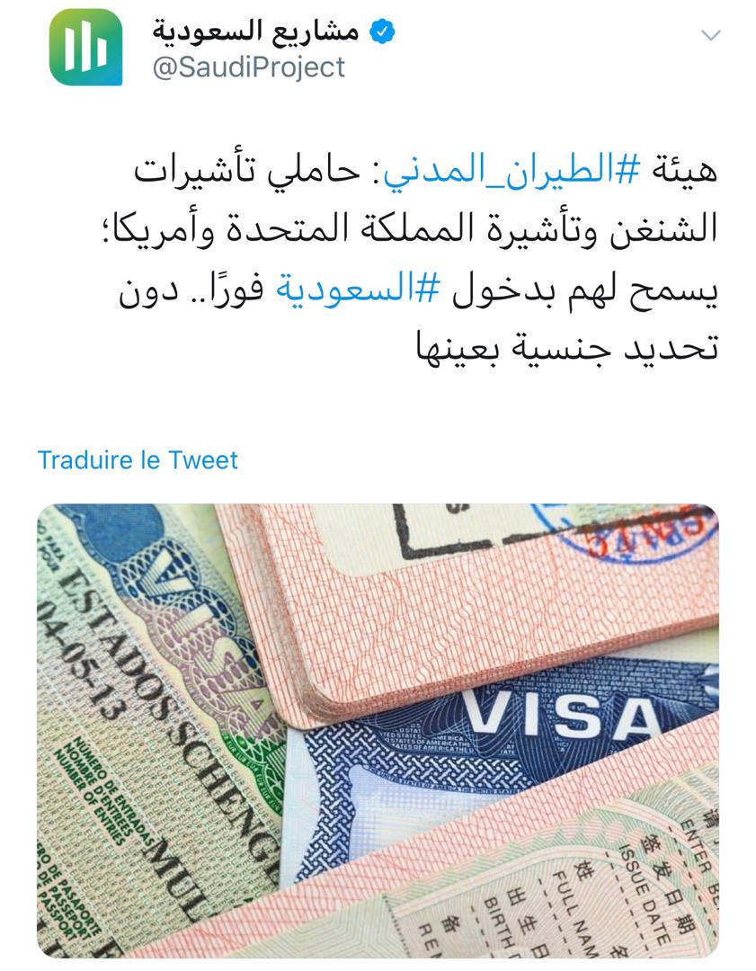 وحسب الإجراء الجديد، فإن حاملي تأشيرات دخول التراب الامريكي وإنجلترا ودول فضاء تشنغن، قد باتوا معفيين من ضرورة الحصول على تأشيرة سعودية لدخول المملكة.