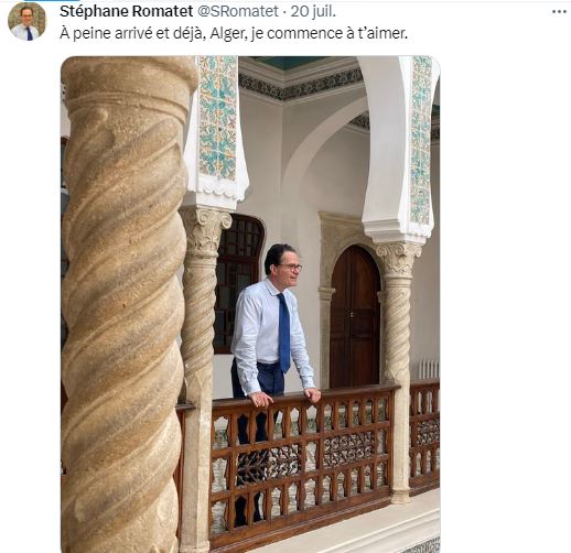 وكتب السفير الفرنسي الجديد تغريدة ابدى فيها إعجابه بالعاصمة الجزائرية  قائلا: “رغم أنني وصلت إليها للتو.. بدأت أحبها”.
