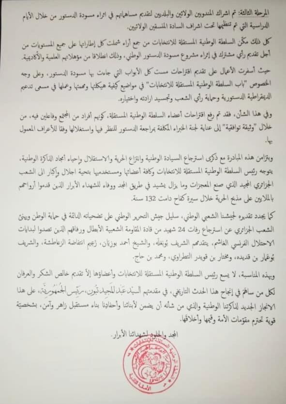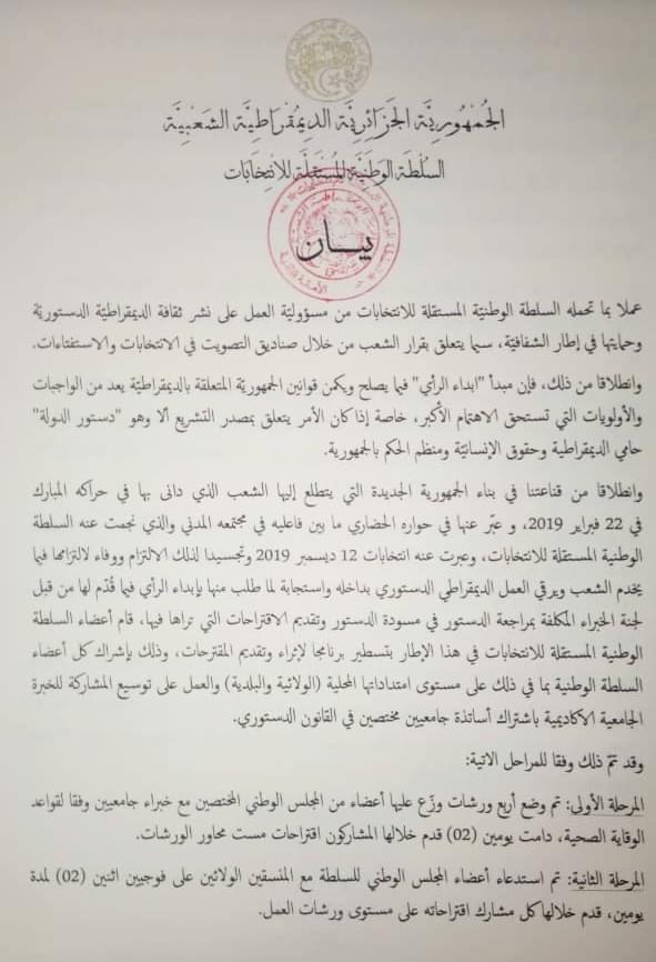 السلطة الوطنية المستقلة للإنتخابات تودع مقترحاتها بخصوص مسودة تعديل الدستور