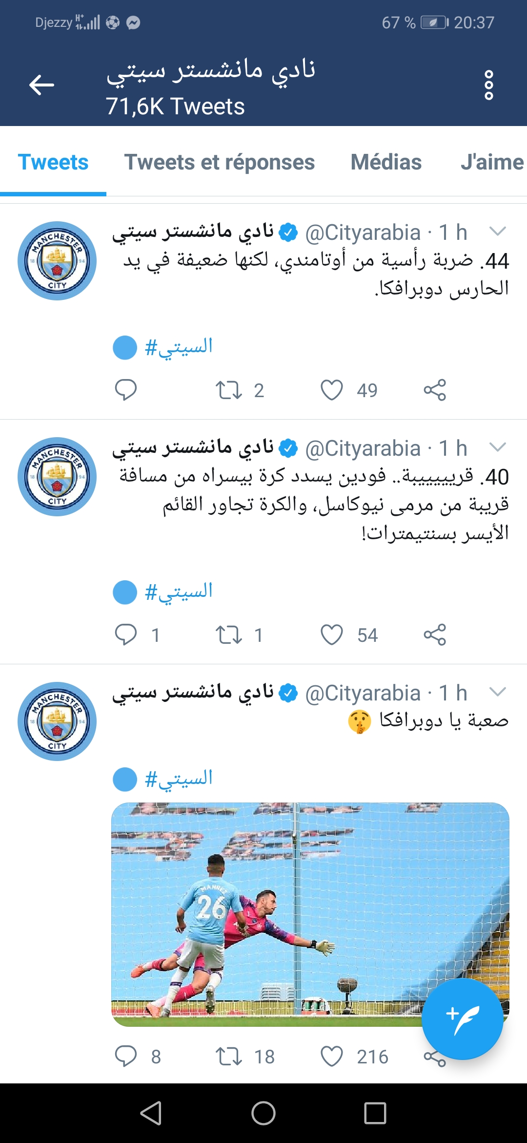 أشاد الحساب الرسمي لفريق مانشستر سيتي الإنجليزي بأداء النجم الدولي الجزائري “رياض محرز” في مباراة اليوم.