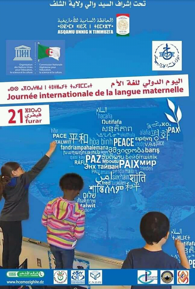 إنطلقت اليوم الإحتفالات الرسمية باليوم الدولي للغة الأم على مستوى دار الثقافة لولاية الشلف بحضور كل من والي الشلف لخضر سداس والأمين العام للمحافظة السامية للأمازيغية عصاد سي الهاشمي فضلا عن ممثلي السلطات المدنية والعسكرية وعدد من الوجوه الثقافية والفنية.