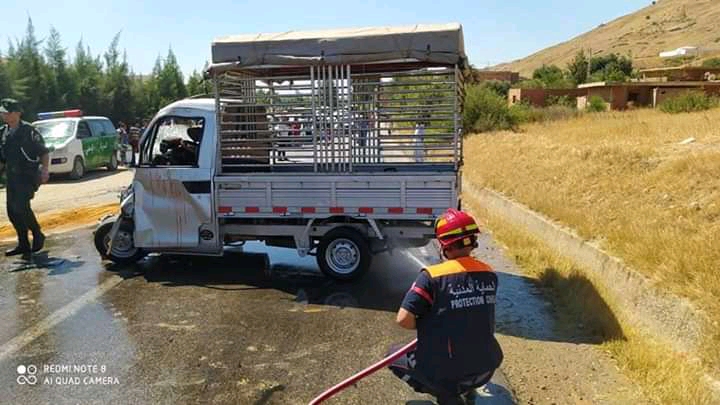 وحسب مصالح الحماية المدنية الحادث تمثل في إصطدام بين شاحنتين من الوزن الخفيف بمنطقة سيدي معمر ببلدية أولاد فارس.