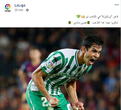نشرت الصفحة الرسمية للدوري الإسباني “الليغا” على “تويتر” و”فايسبوك”، صورة لعيسى ماندي بعد إطاحة ناديه بيتيس ببرشلونة برباعية.