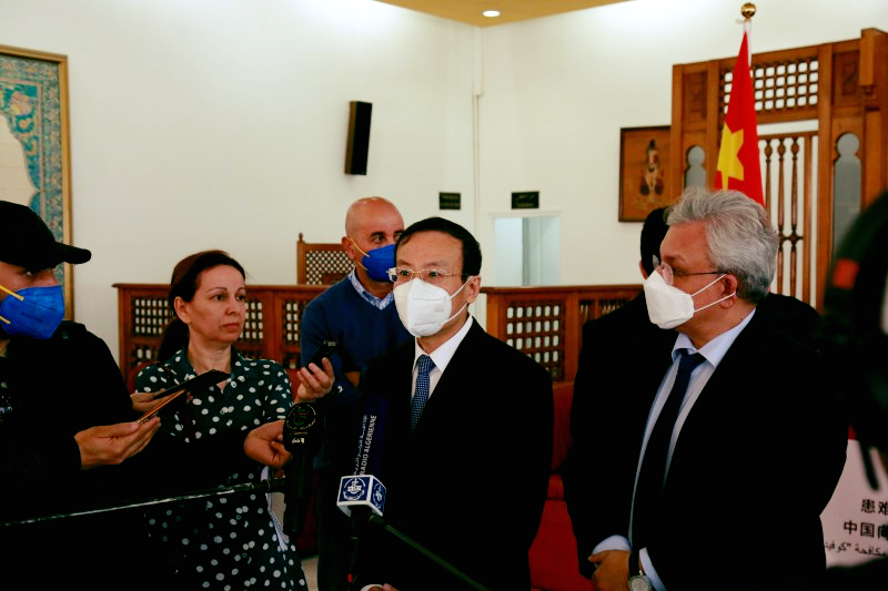 وقد حضر التسليم، السفير الصيني لدى الجزائر لي ليان خه، الوزير المنتدب المكلف بالصناعة الصيدلانية، لطفي بن باحمد، والمدير العام للآسيا والأوقيانوسيا بوزارة الخارجية، قناد بومدين.