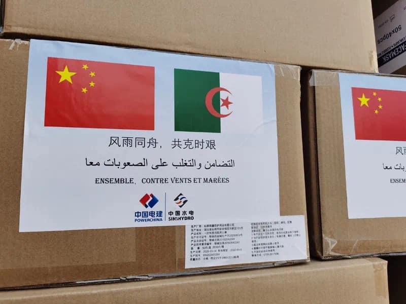وتبرعت المؤسسة الصينية لبناء الطاقة ( Power Construction Corporation of China) للجزائر بـكمامات وملابس واقية وغيرها من المستلزامات الطبية.