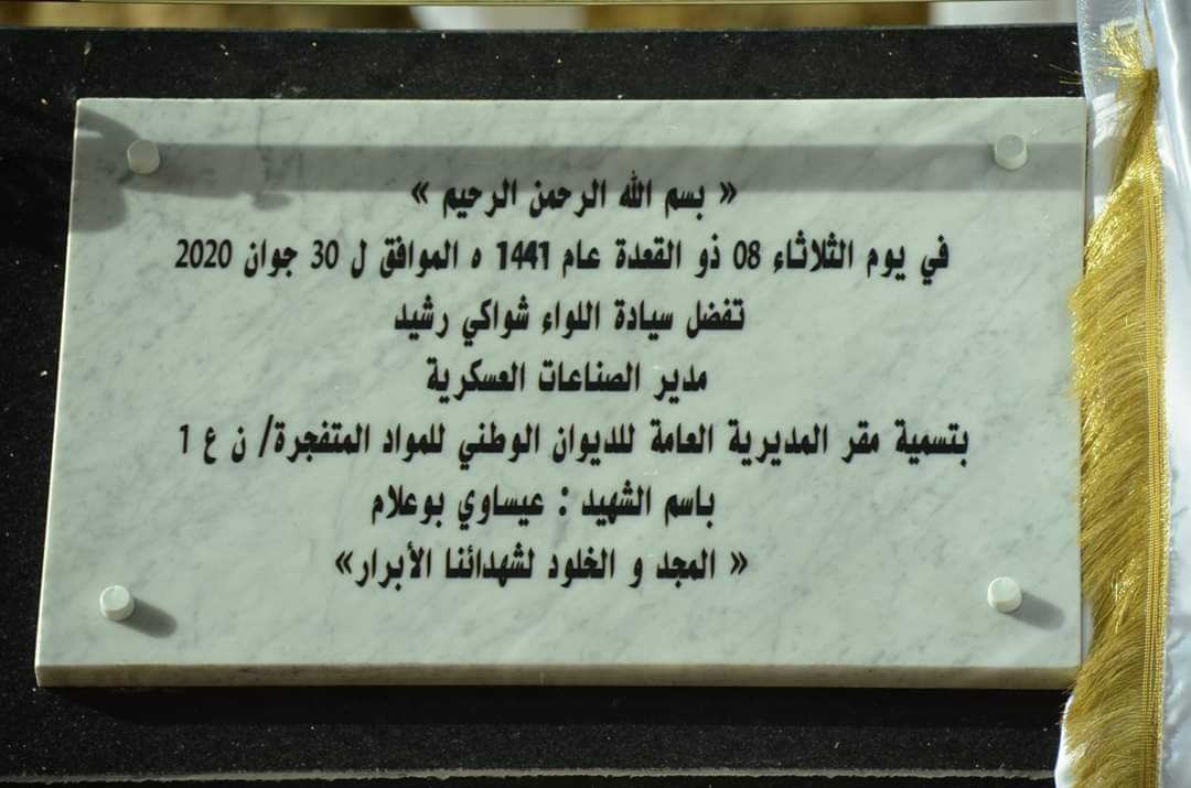 العاصمة..تسمية مقر الديوان الوطني للمواد المتفجرة بإسم الشهيد عيساوي بوعلام