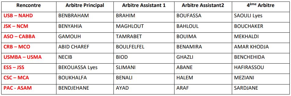 كشفت لجنة التحكيم التابعة للإتحاد الجزائري لكرة القدم عن الحكام المعنيين بإدارة مباريات الجولة الـ15 من المحترف الأول.
