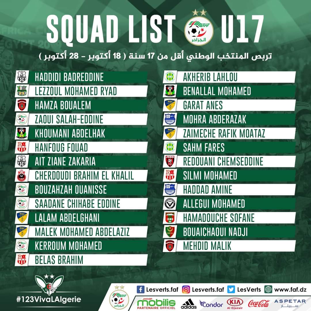 نشر أمسية اليوم الخميس الحساب الرسمي للفاف على “فايسبوك” قائمة المنتخب الوطني الجزائري لأقل من 17 سنة.