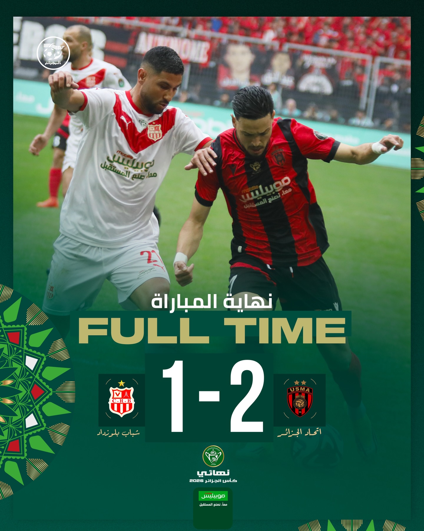 تقدّم الاتحاد الجزائري لكرة القدم (فاف) بتهانيه لنادي اتحاد العاصمة بمناسبة تتويجه بلقب كأس الجزائر، بعد فوزه، اليوم الخميس، على شباب بلوزداد بنتيجة (2-1) في النهائي الذي احتضنه ملعب نيلسون مانديلا ببراقي.