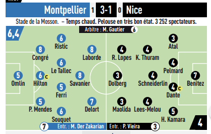 فقد تم منح “دولور” علامة 7/10 ووصفته الصحيفة الفرنسية بأنه صانع السعادة رفقة زميليه “لابورد” و”سافيني”.