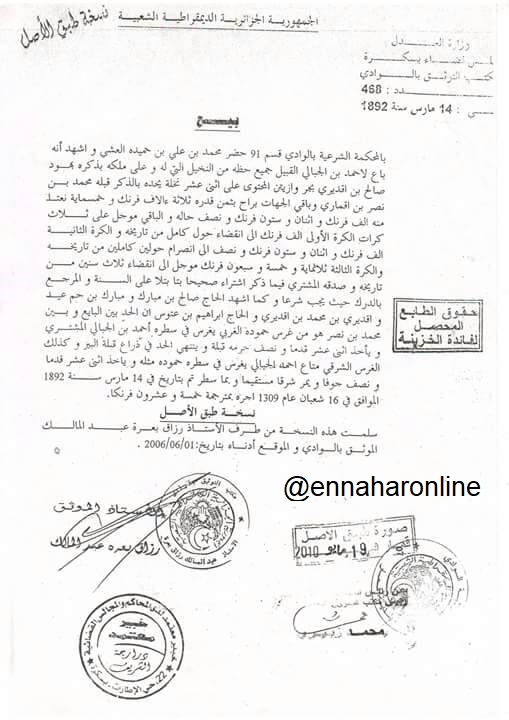 وقال الفنان محبوب، أنّ أغلب الورثة من ذوي الإحتياجات الخاصّة، لهم ما يثبت ملكيتهم من المحكمة الشرعية بباتنة بتاريخ 1892.