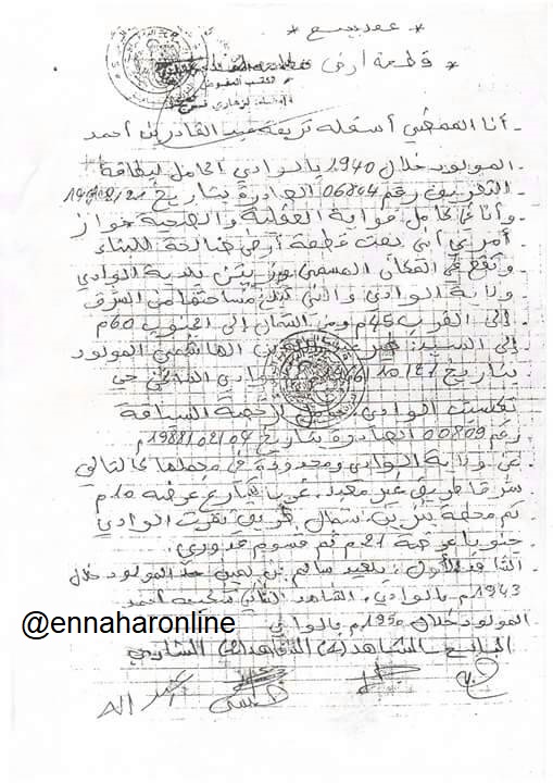 و أنّه يقدم كل الوثائق المطلوبة التي تؤكد نهب العقار وإصدار دفتر عقاري بوثائق مزورة لأطراف أخرى.