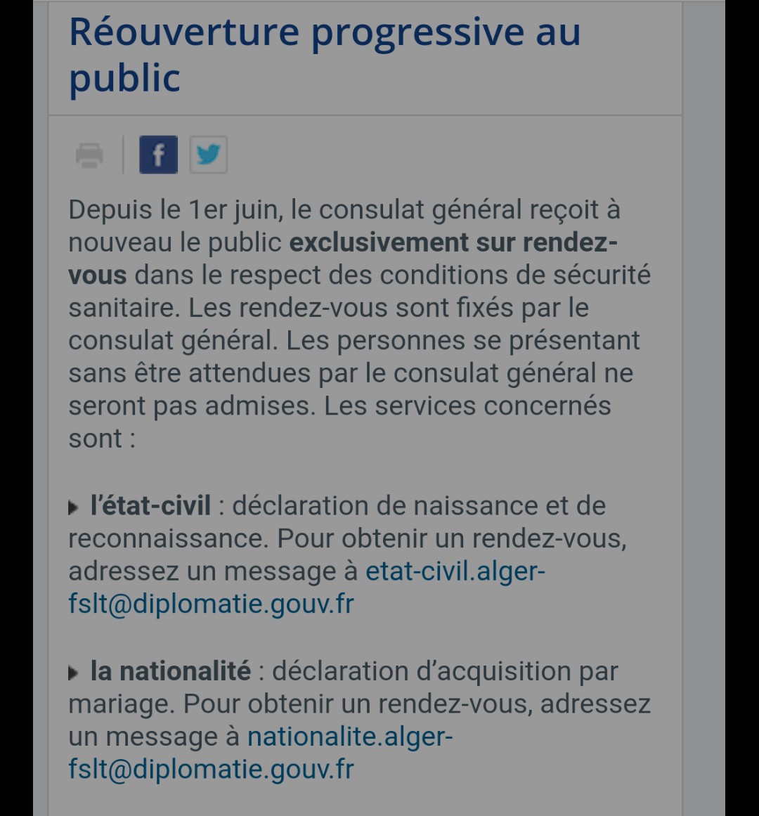 كما أشارت القنصلية الفرنسية أنه ومنذ الفاتح من جوان، تم استقبال المواطنين، وفق الإجراءات الوقائية المعتمدة لمنع تفشي فيروس كورونا.