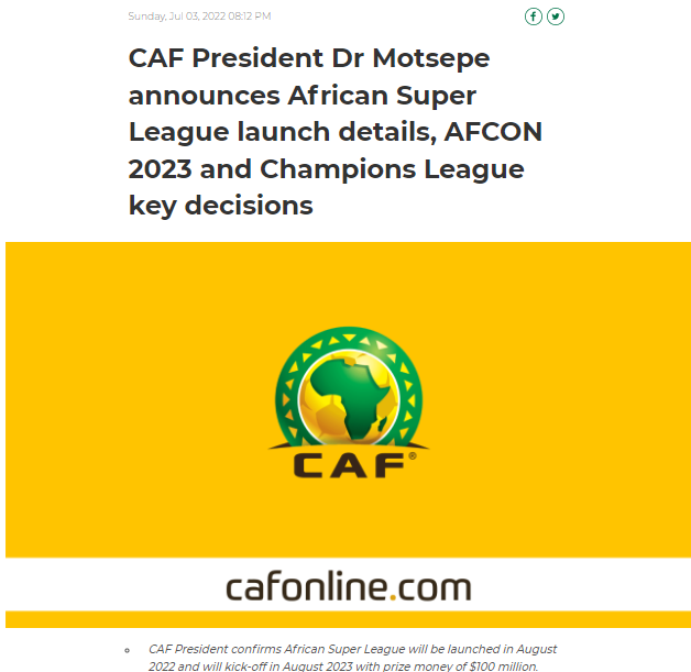 الكاف تكشف عن موعد الشان 2023