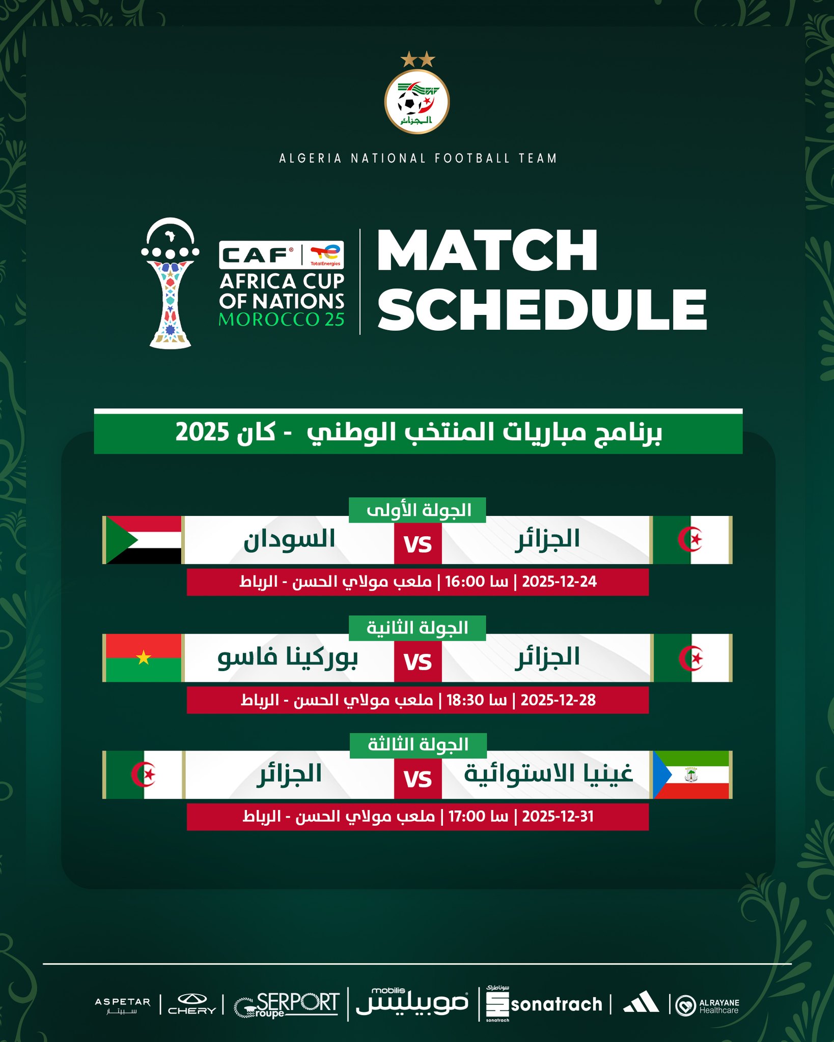 الكشف رسميًا عن برنامج مباريات “الخُضر” في كأس إفريقيا