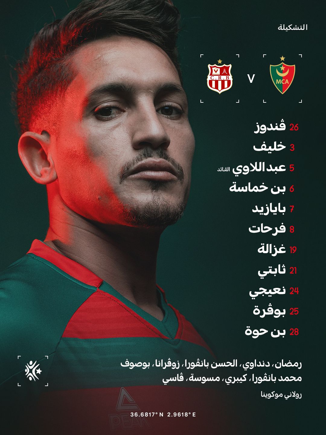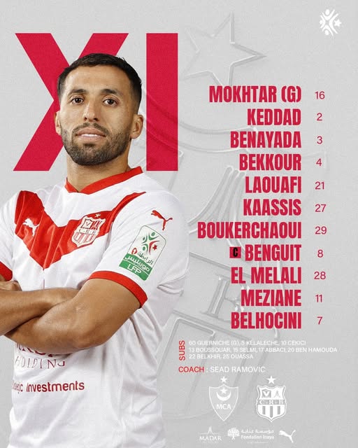 ودفع مدرب مولودية الجزائر ماكوينا، بتشكيلة تضم الركائز أبرزهم زين الدين فرحات، ومحمد بانغورا، فيما ستشهد المباراة مشاركة إسحاق بوصوف الذي سيواجه فريقه السابق رفقة المولودية.