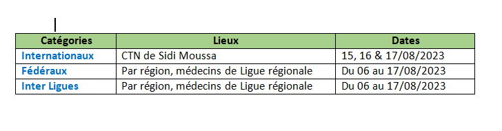 كما ضبطت اللجنة الفيدرالية للتحكيم، بالتعاون مع اللجنة الطبية للفاف، برنامج الفحوصات الطبية التي سيخضع لها كل الحكام، والتي جاءت حسب البرنامج التالي: