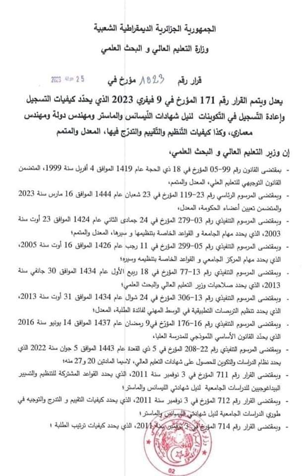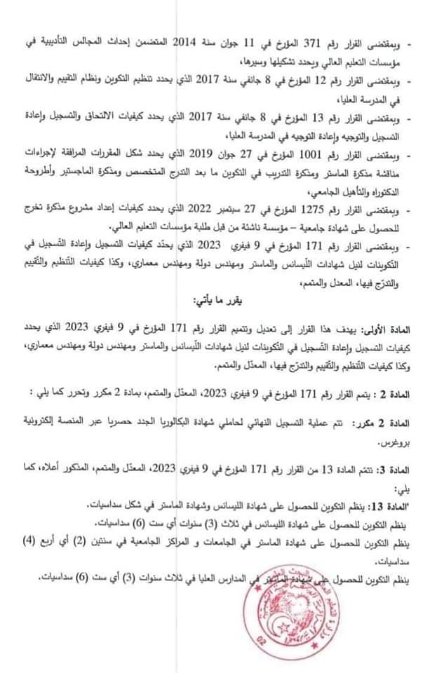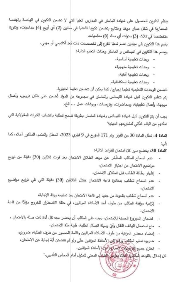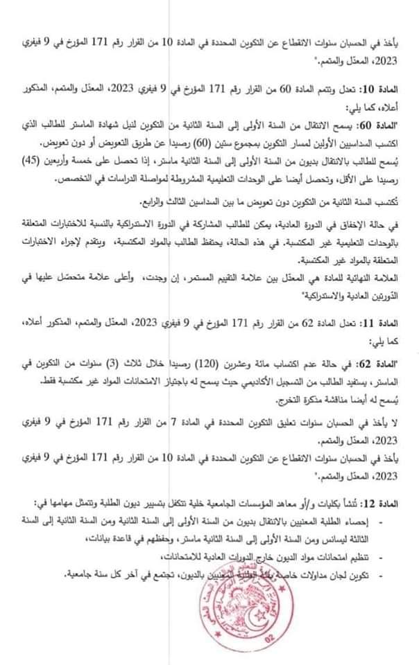 وتضمنت هذه الأحكام رصيد النقاط الواجب التحصل عليها في سداسيين للانتقال إلى السنة الثانية “ماستر”.