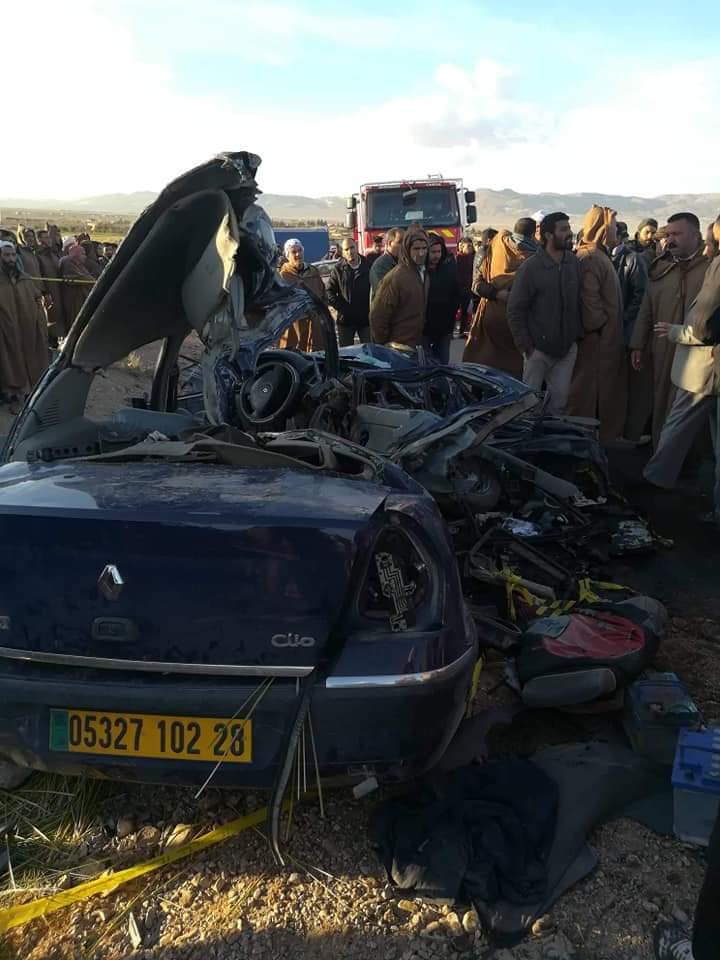 خلف حادث مرور خطير أمسية اليوم بمدخل بلدية تامسة جنوب ولاية المسيلة وقع بين سيارة نفعية و شاحنة 3 وفيات من بينهم امراة و جريح واحد كان في الشاحنة